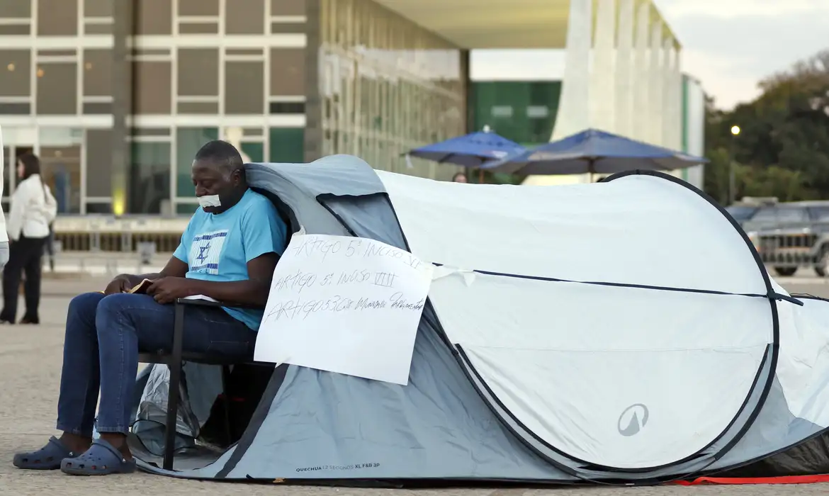 Aliado do ex-presidente Jair Bolsonaro, Lopes montou acampamento no final da tarde de ontem e anunciou que ficaria acampado em greve de silêncio em protesto contra as medidas do tribunal adotadas contra o ex-presidente e seus aliados.